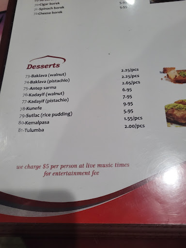 💐We were there on Saturday to celebrate my hubby birthday. We wanted to eat Turkish food and looking for a good quality restaurant. My husband n me are watching Turkish dramas dubbed in Urdu and looking forward to travel to Istanbul next year , inshallah. My husband told me there is one restaurant "Saray Turkish Cusine " and we can go there . I searched and saw there was live music n belly dance on Friday and Saturday, Sunday. I called and booked traditional seating sofa set and told my husband about reservation. Now , from here my story starts, I started to read reviews as this is my habit to know a place before we go , reviews were mix of good n bad memories and honestly I was little worried coz this was my hubby's big day. We went there and got very warm welcome by server. Restaurant was beautiful, full of public, I was so excited to see Turkish community, in my country Pakistan everyone is watching their dramas , and that is the reason their Tourism industry in on full boom , so you may imagine how much exited and happy we were . We got Server by name Heni ,cute girl , and she got our order and our order was exactly what we are watching in drama so we told her about our excitement that we love to taste those items 😀 She was super nice and told us food will be served within 20 to 25 mins and trust me it was on time my husband ate Addana kabobs, and he really liked their food, I was eating Manti and we were so happy as food was delicious and spice were too good. I enjoyed Turkish coffee with Baklava and hubby took tea what I ordered later for myself too 😁 Singer was absolutely amazing and belly dancer was a masterpiece. I seen first time in my life and it was amazing 👏 Who complains $10 to watch , pls try to say nice things what you were enjoying by sitting there, that is also a noble act to do ,say thanks if you was happy....🙏Donna was also assisted us ,such a smiling lady and very professional⚘ I want to add on one thing if Owner can make it change , on weekend there should be more severing staff ,I recommend , like let's pull the string together ❤ But all good , looking forward to come again and I told my pakistani community that they should go there and try their food , also shared belly dance on facebook and still people enjoying.💃🎸 Thanks...