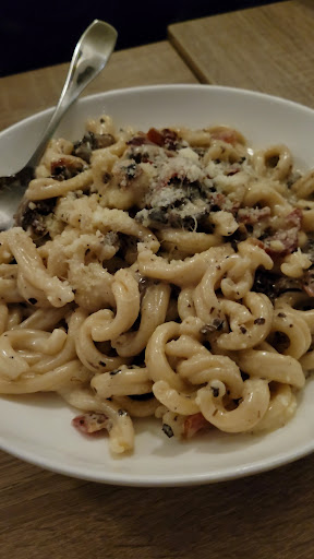 I felt that the pasta was missing a huge component, the waitress didn't offer any Parmesan and I felt it was missing a huge cheese component, and then the pizza was perfectly toasted!! Loved the pizza. Pasta was 6/10 and the pizza was a 10/10.