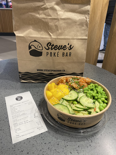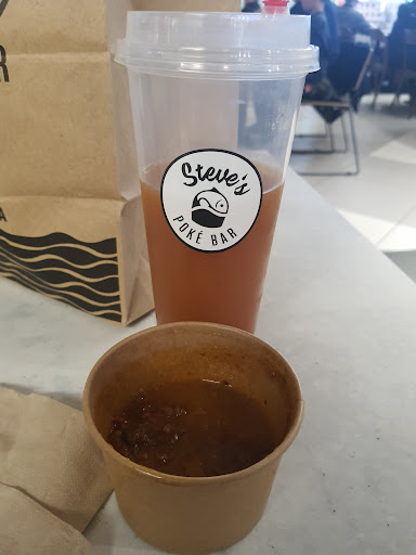 Read moreThis came straight out of the bag took the photo, it looks like a joke but it was untouched (didnt eat or drink any of it yet) This cost $11. Listed as small, but it's half a size of a small coffee cup, it should be stated as snack size. You're better off buying something half the cost and triple the amount at tim hortons for chili, then paying $9 for this dinky baby size. $9 for 4 spoonfuls is sad, especially it coming in a massive paper bag, it was confusing, it was like they stapled it to hide the secondhand embarrassment. Also mind you it took half an hour to get this pre-made stuff. Yikes, bad everything. 👎 at least my coworkers and i know where not to go. BTW not all Steve poke is lame, the one in metrotown quality is good and ppl are productive and efficient there.