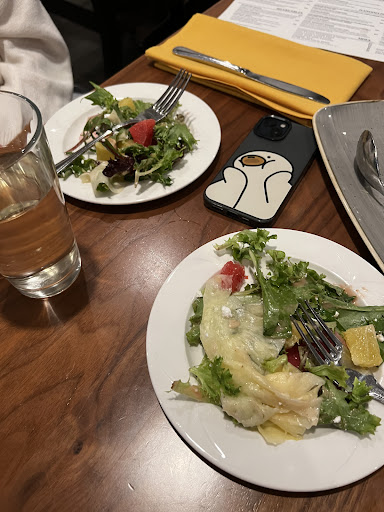 Service was just ok. Had to ask to get my water filled and it took a while before they got to it/remembered. Servers weren’t overly friendly or anything but they weren’t rude either. My friend thought it took a lot of time for each course to come but it didn’t bother me too much as I was okay chatting and digesting a little.