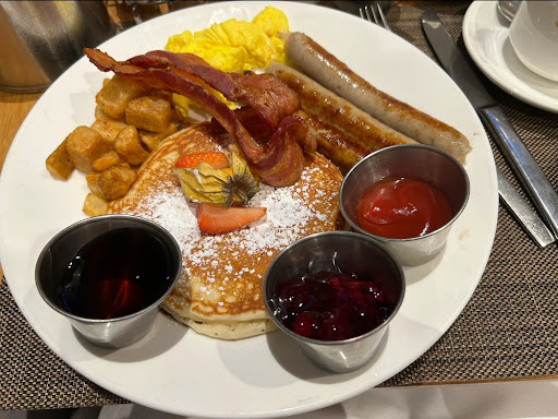 Read moreThe servers are great with kids. There is a kids menu here $10 for 5+year olds otherwise kids under five eat free. Menu is basic however the buffet here costs only a $5 more than the most expensive a la carte menu and comes with coffee and juice ($23). It’s not bad, eggs and protein limited but has fruit, pastries and deserts. You can make your own...