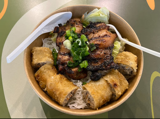 Read moreI walked the entire food court and this was the most appealing and for some reason had no line while other places had 10 people lined up. I ordered the lemongrass pork bowl with vermicelli noodle, it came out within a few minutes. The pork was a little different than I was expecting, it's like it was a paste formed into slices. The flavors were good but I wish it had a stronger lemongrass note to it. The egg roll was really good and the perfect crunchy texture with a nice gooey inside. The vermicelli was perfect for this. I'm happy they gave a good sized fish sauce for this I was afraid they would only give a tiny cup. The fish sauce really brings this whole thing together. Overall happy for this food...