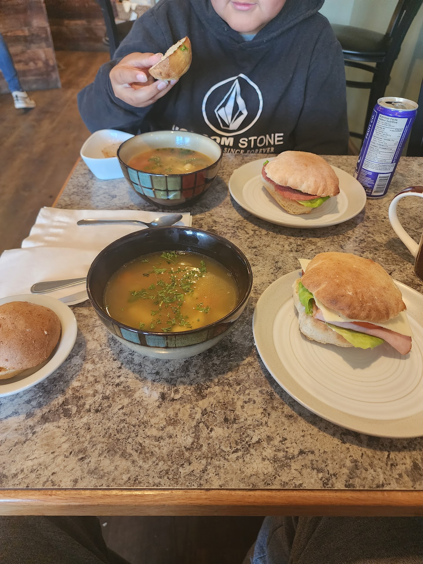 Read moreWe stopped in for a quick lunch in mid-July, as we were on our way to Smithers. What a delightful experience. The young woman at the counter was courteous & helpful. She made us two delicious, decaf., iced Americanos. I had asked for minimal water once the espresso had been poured over the ice & she made the drinks just as requested. They were perfect! We shared a tasty turkey, Brie & cranberry sandwich & it was so good, particularly the bread. I had a bowl of soup which seemed home made & it too was wonderful. Unfortunately, we don’t live in the area, so we can’t frequent the Eatery regularly. But I told friends who live in the area about the friendly service & delicious meal, encouraging them to drop by. It was a refreshing stop on our road...
