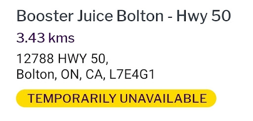 Read moreThe only booster juice that’s close by, expect to wait at least half an hour for a drink and the workers look like they hate their job and are EXTREMELY slow. No common sense if you are waiting for a drink to blend continue with another drink like I have seen at other booster juices. I don’t know maybe a teen thing but they need better training and the location is dirty as well but again the only booster juice in the area. UPDATE I finally got to the cash to order and they told me they can’t make the drink I wanted because all the containers are dirty I walked out along with 5 other angry customers. NEXT DAY UPDATE: decided to give it a try again because it’s the only booster juice. No one in line, teen was in the back on the phone while the place was filthy dead centipede on the floor. Ordered a hail to the kale but I should call it hail to the apple because it was all apple juice, thank goodness they have portion instructions. Paid $10 and I don’t even think my booster was added. Defiantly not coming...