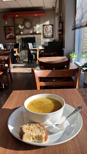 Read moreWent for the First time and last....(Peaches & Cream Soup) was watery no cream,had hardly no corn, its was so pureed that you could drink it down.(The choice between bread or crackers) if i had chosen the crackers i would have been better of, a package of crackers holds more then the bread they gave out.And finally last but not least i ordered a croissant with butter, what did they do they heated it up,which makes it soggy and rubbery, not once did i say heated but that's the new trend to heat up baked goods so you can't tell if its stale. I service was fine but the food was a waste. i will not ever go back even if the food was to change the price also turned me away $10.00 what a waste for things i couldn't eat.-had to go across the street...