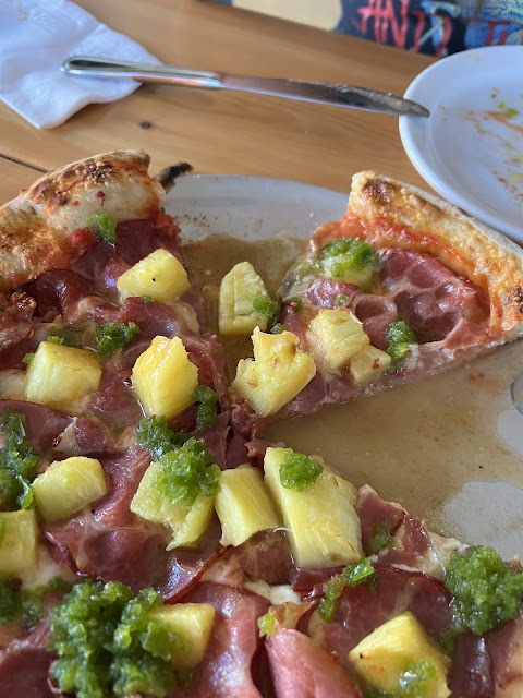 The ordering system for these pizzas is different and not ideal. Being two companies under one roof, you have a server for the beers and order online for the pizza (or at the counter). Seems simple, but the sign up on day one is a bit more than you may want. Putting in your details etc for food isnāt really what I want to do, its invasive. You also pay up front for your food, which kind of negates the whole ātip for given serviceā system. That normally hasnāt been as issue except for today. My girl got her pizza about 15 minutes before the other two came out. She sat without touching it until ours came, for manners. I wasnāt too happy with that. She went up to ask when the other pizzas were coming, which we shouldnāt have to do. We paid and tipped up front, come on guysā¦