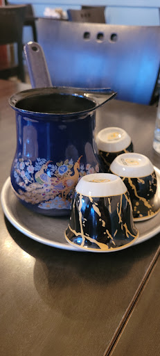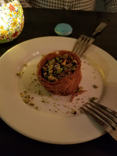 We had the Veggie Platter ($45) with a side of Kibby ($12?) along with Arabic Coffee and their Iced Tea & Lemonade and everything was delicious and delighftul. What we ordered fed 3 of us comfortably for lunch and the Roobek (phyllo with feta & olives), Grape Leaves and Baba Ghanouj were absolutely great. For dessert we ordered the Burma to share which is the pistachio phylo nest and while it was tasty I'm not sure I'd order it again as it was a little tricky to eat and I like some of their other desserts more - worth a try if you like pistachios as there was a generous amount in it!