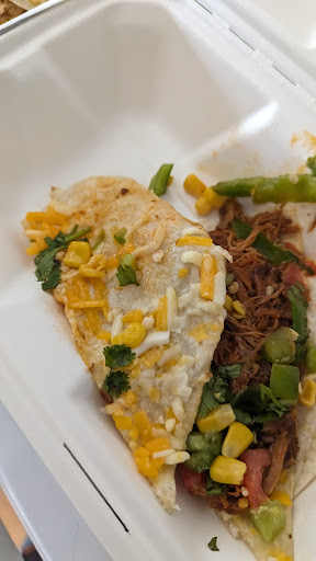 Placed an online order for pickup, 2 quesadillas with corn, tomatoes, green pepper, salsa and cilantro.