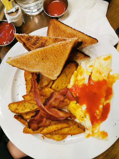 Read moreWe had a party of 4 that stopped for breakfast during a layover. My wife and I have Celiac Disease so we need to eat gluten free. We were served by Ashley and inquired about gluten free options. She told us initially that they could not do anything gluten free but then said they offered gluten free buns. My wife asked about plain eggs, to which she replied they could do since it wasn’t busy and they could clean the grill. When our meals came out all we got was a small portion of scrambled egg which I estimated to be the equivalent of less than 1 egg and a few slices of bacon arranged on a small plate. We were charged $7.00 each for this which was way overpriced for what we got. We were also both charged for coffee refills but my wife never got a refill, nor were we informed that refills were extra. This was an extremely dissatisfying experience and we had to go elsewhere to get more food. Most restaurants we now experience are very accommodating and present us with at least a few reasonable options. I’m not a chef but last time I checked most kitchens have clean, uncontaminated frying pans that an omelette could be cooked in which is naturally gluten free. I would suggest not eating here unless you want to...