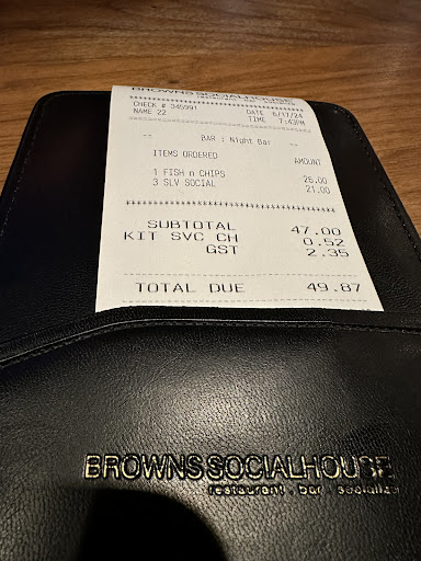 Read moreHad dinner with my husband at this location. It’s one of the smaller Browns locations. Parking is not great due to its location downtown but we found a spot close by. We really enjoyed the food and drinks but the service was definitely slow for not being busy at all when we went. As we left we noticed it took one table literally 20 minutes to get just their first round of drinks. Definitely not a convenient place for us to come back, admittedly we went downtown just to eat here. Would have rated higher but noticed after we left on our bill we were charged a “kitchen service charge” with no forewarning or explanation what it was for or where that money goes. Only $1.75 but as a restaurant owner myself I know these small charges add up to big money if it’s passed on to every customers bill - possibly just a cash grab for the owners. Even if it went to the cooks they should be tipped out by FOH like everybody else does, or pay your cooks better wages. I see no reason why this charge should be on our bill, and when I reached out to the restaurant about it there was no response back. This could be segregated to this location only but beware! I actually would not go back to this restaurant again because of it. I won’t support a business with...