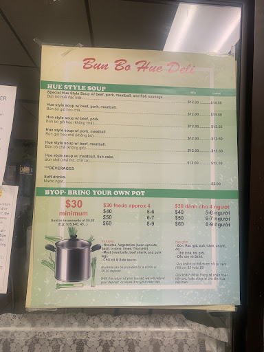 Read moreI recently visited Bun Bo Hue Deli and had the pleasure of trying their bun bo hue noodle dish. Their pot to go is a big hit..Let me tell you, it was absolutely delicious! The broth was rich and flavorful, with just the right amount of spice. The noodles were perfectly cooked and had a great texture.