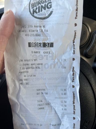 Read moreAbsolutely horrible experience. Received notification on my cellphone today(Wednesday)March 09 2022 about Whopper Wednesday. Stated medium combo $5.99, large combo $6.99 and a la carte $3.99. You order at the counter and they tell you something different pricewise. When k got back home I opened the app and clicked on "order" and sure enough the above stated prices are displayed and pickup address confirmed. Called to complain and was given a royal runaround by management on 2 levels trying to justify not honoring the offer including wanting to know if I was looking at their app (had stated to her already that it was for a Whopper hamburger). Told her not to insult my intelligence. Had to ask 3 times for the name of her supervisor because she kept on stonewalling me my saying she was the manager. (She was managersuperior that location). She finally gave me the phone number only(no name) of her superior and this was round 2 of runarounds. She twice tried to tell me that this was for Wednesday, insisting that it was Thursday. After she realized I wouldn't buy that B.S. she admitted it. Then she tries a multitude of excuses including that that was an Alberta deal and franchisees could adjust their prices if they choose. I have submitted complaints to Burger King customer service and am to get a response from them in 3-5 business days. If anyone else is experiencing similar problems, I urge you to file a complaint with customer service and if not satisfactorily resolved then maybe we should consider contacting CBC...