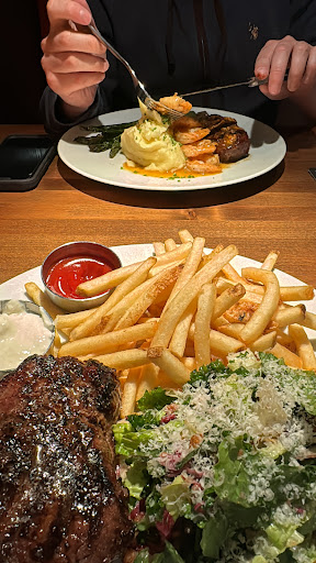 Ā Ā Ā Read moreFor starters, weāre here every week and generally is amazing!! First off. The waitress apologized and tells us she doesnāt have a brain tonight. Great first convo with customers. Tonight I took my wife for dinner and her steak was burnt, she Prefers well done (I know) lol, but this was burnt really bad on both sides. Asked for extra peppercorn sauce on the side and was given gravy of some kind. Asked the waitress and she said it was the same, with no peppercorns. āIt wasnāt even the same colour. Clearly didnāt want to admit to a mistake. Manager shows up and respectfully got her another meal and was perfect as always. (Her meal was free) My virgin caesar wasnāt mixed. I asked for an straw and never received one. Didnāt drink it and asked for a glass of water. My steak didnāt rest, so it was swimming in soup mixed with the sauce, made the potatoes kinda gross. Flavour of the steak and mushrooms was good thou. The salt that you put on the asparagus is new and disgusting. Shouldnāt have changed it. My shrimp on the side was perfect. Tail came off nice and flavour was on point. I ate everything cause I worked all day and finally got a meal at 930pm. Didnāt mind paying, I did eat it. The service was terrible thou. We waited 20 min for a seat. āWalk-inā so I get it. Then waited 10 min for a waitress and only visited the table a couple times. Waited 15 minutes just to pay the bill. I walked up to the hostess and she instructed me to go back to my seat and she will find our server. Overall. I make it a habit to visit you once a week. We order the same thing every time and unfortunately itāll be a while before I return. Check # 1781471 Table...