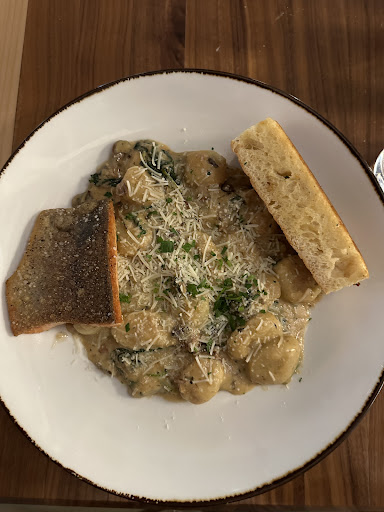I ordered a gold margarita and the tequila steamed mussels. The margarita was delicious! Perfectly balanced between sweet and salty. I could have downed several of these but stuck to only one. The mussels were absolutely fantastic. The sauce was tomato-based, with lots of fresh herbs. I squeezed the grilled lemon that came with it over the dish, and the flavour was bright and very satisfying. The mussels themselves were cooked perfectly - tender and juicy, not overcooked or rubbery at all. I've also never had such large mussels before, these were substantial! One mussel was a mouthful. The dish came with grilled sourdough bread and French fries, both of which were excellent.