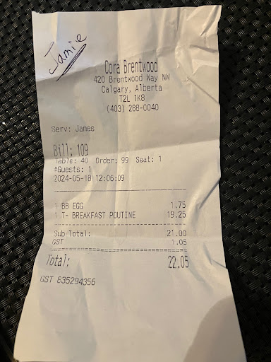 I like my eggs medium poached, and many places get this order wrong ... perhaps, because they are too rushed to care??? I like them with the yoke runny but NONE of the white runny. The white has to be perfectly cooked. If I order this as "medium poached" at some places, they inevitably screw it up and I end up with part of the white uncooked. At other places, if I order this as "medium well" to ensure the white is completely cooked, they inevitably screw it up, and I end up with a fully cooked hard yoke and white. So, although medium poached eggs are my favourite, I always hesitate when I order them, because I worry that the kitchen will get it wrong. Well, Jamie assured me it would be fine, and that he would explain things to the kitchen on my behalf. My poutine came back to me with PERFECTLY POACHED EGGS today! Yae! Cora's team knows how to do it right, and your staff (especially Jamie) is always amazing. THANK YOU, THANK YOU, THANK YOU!!!