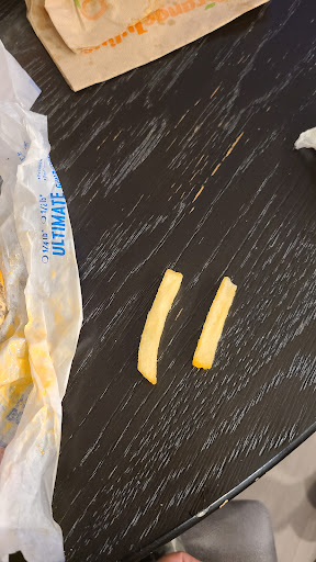 Read moreI’m not sure exactly why so many corners ar evening cut at this location, but I am so disappointed with my whole experience today that I feel they need to be addressed. I put in my order with a polite young woman, and wait. There were two orders ahead of mine. I waited and watched as orders were placed to be packed on the counter while the girl filled cups and other things. Needless to say, in the 15 minutes I stood and waited, my order got very cold. When I was finally handed the bag, I go to fill my pop and the machine sprayed me full of pop. I mentioned it to the cashier and she just said - yeah - you have to be careful - and then went about her business. I was covered - all over my shirt, pants, and arms. Ok. Not fun. When I get my cold order home, I really saw the extend of the “money saving” tactics: my kids banana had both ends cut off and was very old and inedible (obviously one of the bananas prepped for ice cream useage), his “chocolate milk” was barely brown - regular milk with hot chocolate sauce squirted in the bottom of the cup , and there were hardly any fries in the containers.