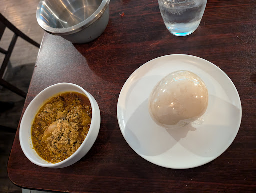 Visiting Calgary and decided to find the closest Nigerian restaurant and a few came up but we decided to go with this. The layout and interior was just a wee bit nicer than the standard Nigerian restaurant look or aesthetic. The lady who attended to us looked tired but she was smiling through it and that is huge to me. I could eat and enjoy my food without a smile but the effort meant or means a whole lot in my opinion. The washroom was really clean. The water for rinsing/washing our hands was nice and warm. Little things like that count. NOW THE KOKO (main thing). The nkwobi was BOMB. Not bones funny muscle-y meatâŚnice good sized meat and delicious! I had Afang and that was really good too (you can see that I didnât remember to take pictures⌠e get why đ). We got the grilled tilapia to go and feedback we got is that it was really nice. I will definitely be visiting again. Oh! And wait time was not bad at all. Nkwobi came within 10mins of us being seated and the main meals came before we had finished...