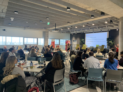I added photos of our attendees enjoying the event, satisfied with coffee, food, and knowledge (I did not take photos of the food set-up unfortunately). I added a picture of the special diet labels on my breakfast bar (so tasty!) and salad, which was inside this labelled bag. As a Celiac, it is such a relief to have clear communication and labelling...