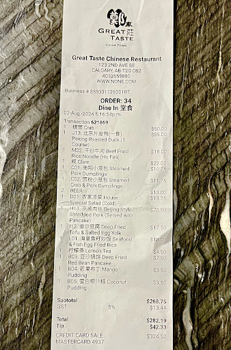 Read moreIf they have 0 I will do it ;( so disappointed about the food here salt and small place . Almost a year I not been here I think let try one more time. But this the FINALE NO COME AGAIN! The pictures on menu so big that ok when your place order is come too small no big deal that the way business, but you spen for one dish over 18.99 and used chopsticks 3 time is done;( how can you enjoy. Today I spent 140$ and no full “ oh full with disappointing) go home my family got diarrhea . Went washroom 2 times for me.my mom 4 times and vomiting. My husband 1 time. I really really want go hospital get a paper work for Impecter check from food or clean not quality why my family got in trouble. Now 3 am I’m feeling not well . I hope someone tell me how to report this problems. THIS IS THE WOST RESTAURANT I EVER HAVE DIARRHEA. We eat out 4-6 times a week before we love to eat. And like to post the pictures on or keep memories. This is a good time I can post pictures of small place . The great teast have two place one in downtown and 64 ave NW that place ok not too bad service worst wait times for food and water you have to call them. I don’t want said bad to business . JUST WANT PEOPLE SPEAK UP OR READ BEFORE YOU COME , NO IN TROUBLE LIKE...