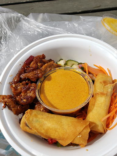 So far, I've tried the Peanut Satay Bowl, the Pad Thai, the Cauliflower Wings, and the Khao Soi. I have friend that love the Pad Thai and I admit it's very tasty but I find it a bit rich for my taste. Personally I love the crispy cauliflower wings with Buffalo on the side. I've had really bad cauliflower wings at various places and these are easily the best I've ever had. The Khao Soi soup is a lovely creamy (curry?) soup, that's just a bit spicy. And the Satay Peanut Bowl has rice and this tasty veggie meat that boggles my mind, along with some vegetables.. The sauce reminds me of the creamy/spicy Khao Soi sauce (not soy sauce).
