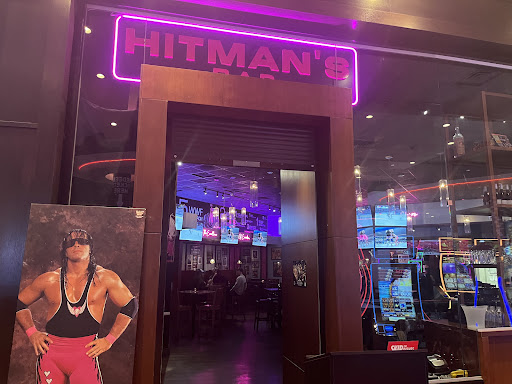 When Bret says "the best there is, the best there was and the best there ever will be", he is NOT talking about his bar. We hit this place up before a concert, and left very underwhelmed... The venue is GREAT for memorabilia and nostalgia - tons of pics, stats, belts, gear, all things Hard, Stampede Wrestling and Bret's career. A few of the TV's stream old matches constantly as well, so there is a lot to look at and discuss for sure. Staff were friendly enough, but pretty aloof. There was a manager going around double checking on everyone as well, even as the place filled up with patrons. The drink menu is pretty lack luster, was especially disappointed to see that a bar based on a Calgary treasure barely utilizes any of the MANY local breweries & distilleries. For food, the Event Menu, is all they offer when there is an event at the Dome, was also extremely disappointing. We had previously looked online and were excited to try a few items that are not offered on the limited menu. As a random aside, the website is full of some pretty funny spelling errors. We settled on the Buffalo Chicken Ranch Fries to start, then I ordered the KFC Rice Bowl as my main, hubs ordered the Crispy Chicken Sandwich and made it "Calgary Hot" for the extra $1. The app came out pretty quickly - a big bowl of soggy yet somehow undercooked fries, some dry chicken pieces, and and some buffalo & ranch drizzled on top. Once we mixed it up, the buffalo & ranch at least added some flavor and made it edible. Unfortunately, we didn't have time to enjoy it as an App because only minutes later, our mains were delivered to the table, our Server shrugged and said "there were no other orders in, so it came out really fast" as she dropped it all down and walked away. The KFC Rice Bowl - a big bowl of rice, topped with a ton of what appeared to be premade chicken strips diced up, 3 pieces of cucumber, a tablespoon of shredded carrots and some sauces... The menu says there was to be green onion & cilantro as well, but mine had no green at all. They have NO business calling this KFC, I can only assume that's because they put a Gochujang glaze on it, so that means they can call it Korean fried chicken. Either way, while there was a significant portion of it, it was dry and soggy at the same time, like it had been fried at one point, but then reheated in the microwave for service. Fortunately, the glaze and the Sriracha aioli were flavorful and made the dish edible under the circumstance of being there specifically in advance of an event and needing to eat. The Crispy Chicken Burger was slightly better, the added Calgary Hot sauce was tasty (not hot though, at all). Same chicken in this one, but it was not nearly as dry. The side of fries were the same as the appie, bland, undercooked but still somehow limp and ice cold even though they came out quickly. All in all, we will not be back unless we find ourselves again there for an event and did not plan ahead for alternatives. The wrestling nostalgia will only take you so far. Everyone was friendly, but in a world where our hard earned money does not go nearly as far as it used to, places like this are...