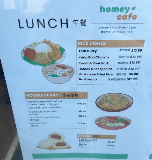 There is only one employee, and it is the infectious, generous, thoughtful, and inventive chef that you see on Homey Cafe’s Instagram. She does it all! All of the homemade cooking, packaging of her proteins which you can purchase from her shop to take home, + serving and hospitality. I could not be more impressed, and that she does this at age 68, and embraces each customer with a lot of warmth, I left wholly impressed.