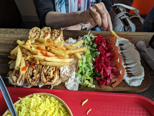 I got a Shawarma and it was breaking and falling apart in the 10-15 minutes we were sitting. Never seen that happen SO quick at any other Shawarma place in the world. The platter presentation was great but it literally took 30 minutes for them to prepare it. Everyone else got their food before that and they were done while the person who ordered the platter was the last one eating. They gave no Pita with the platter, didn't have any small cups to share drinks...gave us tiny Tea cups instead.