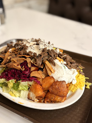 I ordered the Chicken and Beef Shawarma Plate and watched in awe as the staff assembled it. The plate was packed with hummus, turmeric rice, garlic potatoes, chips, fresh veggies, and an enormous amount of meat. It was a feast for the eyes and the stomach! Despite the generous portions, the quality of the food was not compromisedâthe flavors were warm, fresh, and satisfying.