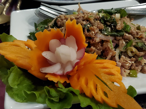 The ONLY reason I gave 4 stars rather than 5 - I looked at the online menu and noticed the Pad Thai was $18, when I saw the menu, it was $20. Ok, maybe the website wasn't updated. They have a drive-thru, and when I went to pay, I noticed their drive-thru take-out menu had Pad Thai and it was $12.95!!! I thought this must be old, so I asked if this was their current drive-thru price, and she said it was. When I left, I grabbed a take-out menu, the Pad Thai was $18 there. So, if you drive thru, maybe you don't get the feel of the inside or the service but the Pad Thai is only $12.95. If you decide to do take out and pick it up inside, you pay a $5.05 premium totaling $18, and if you decide to have a seat, and take it all in, that's yet another $2 premium from the drive-thru. I guess MAYBE I can see their thought process of take-out vs dine-in as lots of places do a 10% discount for take-out. But from drive-thru to dine-in being a $7 difference, in this day and age - that's HUGE!! I cannot see myself bothering to go inside to eat again, if I go back, pretty sure it will be through the drive-thru. Guess it will save them some dishes and fancy plating. Never saw a place with such drastic pricing differences- not even on Skip!! Still kind of mind blown! I guess the other bad thing is if you want to head back out west on 16th....Goodluck! Have to turn right onto 16th Ave or turn right on 19th Street - unless I missed a gap in the fence letting you behind...