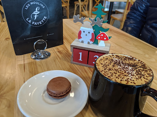 Read moreDrive around Calgary and youâll find hidden gems. Driving aimlessly on a Sunday, I saw Les Moulins and decided to visit, and was I beyond ecstatic. The moment you walk in, you feel Paris. You inhale Paris. And you get Parisienne service. Josue welcomed me as I entered. I had no idea what to order but he explained their lunch, dessert and fresh made menu items. When I saw Almond Croissants, I was sold. Then I sold my self on their Smoked Salmon on pumpernickel bread, topped off with a cappuccino.