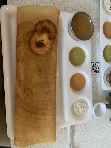 The highlight of my meal, however, was the Masala Dosa. As I took my first bite, the thin and golden-brown dosa revealed its well-spiced and perfectly cooked potato filling. The dosa itself had a delightful texture—crispy on the outside and soft on the inside. Accompanied by sambar, coconut chutney, and a range of other delectable condiments, every bite was a burst of flavors that transported me to the streets of South India.
