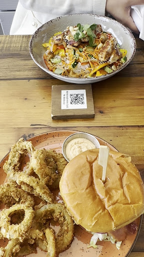 My burger was decent, albeit smaller than the advertised 6oz size. I eat steaks and burgers all the time so i know what a 6oz patty or 12oz New York strip loin is supposed to look like. Anyway, my wife's burger was quite salty and she didnt even have bacon on hers. And the tacos may as well be coleslaw with deep fried batter because the shrimp was barely noticeable for $18. I almost forgot, i dont think I've seen more sorry looking fries except for a few times at a run down Mac Donald's or something similar. More than half of them looked kind of dark and discolored.