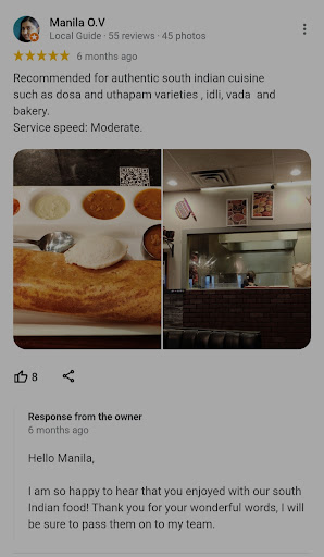 Read moreWe were on the way to this restaurant. This would have been our second visit and last time we visited the restaurant the service was very slow. It took about 50 mins to get our dosas on the table. So this time around we decided to order the food in advance so it will be ready by the time we reach the restaurant for dine in. Some one answers the phone and I say I would like to pre order my dosas, and I will be there in 10 mins. The person responds that they don’t take pre order for dosas, whereas in one of their responses to a review they recommend to pre order because people have complained in multiple reviews that their service is slow. So to this I say last time I had to wait for 50 mins hence we decided to be proactive this time and order before hand. The person tells me very rudely that it might have been busy and he cannot serve me first bypassing the other orders. I never requested for that. I still insist that I would like to pre order, he can start prepping my dosa and I would be there in 10 mins. At the end he again says rudely, the dosa will be ready in 5 mins and if it gets cold it’s my responsibility, to which I say can you please hold on for a minute and he just hangs up. The exact same moment we decided to go to another restaurant and not visit them. The way you speak to your customers go a long way in building a loyal customer base, when you are this rude I don’t think anyone would come eat at such a place where they are disrespected. I am not the only one who complained about their service being slow and I don’t think I will be the last one. Their food is excellent and that is the reason we wanted to visit them again but with this experience I am never going...