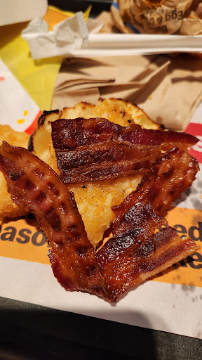 My first breakfast sandwich, the English muffin was a puck The 2nd, raw cold rubbery bacon The 3rd, they handed me cold old bacon to try to fix the issue When I wasn't happy with that (supprise supprise) they proceed to microwave the bacon to a crisp.