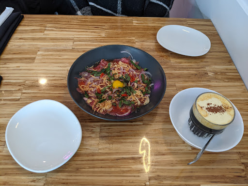 Ā Ā Ā Read moreI was very excited to visit this place after seeing it all over my Instagram. We got there right at opening time. As we were waiting to be seated the waitress that came to receive us gave me a very obvious judgemental stare, starting at my shoes to my face. I was not wearing anything out of the ordinary, btw. My partner never notices these things until today. He was very upset at this rude first impression and wanted to leave but I just smiled and stayed calm as I am there to try the food and was not worried about this waitress as Iām sure she may not realized how she was acting. Anyway, we ordered our food and everything came out quite quickly. The bone marrow was okay but not as flavourful as I had hoped. The un-pho-gettable cocktail wasā¦forgettable, unfortunately. I liked the bun rieu but it felt like it was missing something, maybe more fish sauce or salt? I couldnāt put my finger on it but it was lacking in something. My partner got the chicken curry pho, it was also okay but nothing spectacular. 3 stars for food coming out promptly and the service. Missing stars are for lack of proper menus and food tasting sub-par. The menus were printed on printer office paper. We didnāt get nice new ones either. We got crumpled menus basically. And then thereās the waitress who needs to learn proper greeting etiquette. Overall, itās a nice place to try once if youāre curious but we will not be returning here...