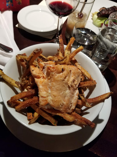 I had high hopes for this place as it came highly recommended from my friend, but when we went there in April for her birthday, it was a big disappointment. First of all, when we ordered our drinks, my wine never came and the server never came back to check on us. We waited for 15 minutes as we wanted to toast my friend, and finally I gave up and went to the bar and asked for it there. They were nice enough to give it to me no charge, though it wasn't a full glass as it was the bottom of the bottle. I would have rather paid and had a full glass with proper service. Then we had to wait quite awhile to have our order taken. I understand there was a private party in the big room, but it was a lot longer than I'm used to waiting at any restaurant. Then came the calamari, which was actually quite good. Definitely the best part of the meal, the only good part. I should mention the music was so loud I could hardly hear the server or give instructions for my dietary restrictions, and the live music hadn't even started yet! Finally we received our meals, quite awhile later, and they were all disappointments. Not one of us were totally happy with our meal. Let's start with mine, the salmon on fries. I have food sensitivities so wanted something simple without a lot of unknown seasonings I'm sensitive to, so I asked for salmon but instead of with the noodles and broth I asked for plain with fries as I didn't see plain rice on the menu. They put the overcooked, flavourless salmon (not even a lemon) on top of a bowl of fries (so I couldn't even cut my salmon with my fork). This I would have been embarrassed to serve at a fish and chip restaurant. When you are cooking fries from scratch, they need to be blanched ahead of time and cooled before refrying. This is a basic skill. If you don't, you get limp burnt fries like are pictured. I say this from a lot of experience. Next was my friend who got the salmon dish on the menu. It was cold. Noodles, broth, cold. She said it didn't taste good either and sent it back. Both Caesar salads looked like they had been mixed 2 hours prior and were all soggy. I spent 2 years making salads at Milestone's, so I know what they should look like when fresh. Next up, the beef; not a whole heck of a lot for the money. Don't get it if you're hungry. Then we had the pasta with just butter, tomatoes, cheese. Not even a real sauce. Still had trouble finding a server. They kept rushing past us. We were able to grab a hostess for a group picture though, so thank you to whomever you were. We talked to the assistant manager and complained, especially me and my friend about our salmon dishes, but he never even reduced my bill, so I paid $7.50 for fries that belonged in the garbage, and that's when he took my salmon to wrap up as I was done. I waited for my salmon and we tried to get our bill and pay for basically 1 hour. Plus I tried for over the hour to get the rest of my salmon wrapped up. The assistant manager disappeared with it and I didn't see it for a long time. It seemed the servers were more interested in all the suits than to bother with a table of women celebrating a birthday. Getting a server was nearly impossible and you felt like you were imposing every time you had to wave one down. Later on I flagged down a server because I really needed to leave and asked about my salmon. She had no idea where it was. She came back later and said they were making me a new one. An hour later they brought my old one. Where had it been? It became cat food. So really, the calamari was great, the live music was great when it started, but everything else from start to finish was a poor experience. I worked in the restaurant industry for 5 years on both sides of the restaurant, and it's like they lacked the basic skills to make good food and were just trying to make it look fancy with a half a baby bok choi. Please master the basics first. I was at Joey Barlow today for another birthday and received exceptional service and the food was hot and delicious. Needless to say, I don't recommend...