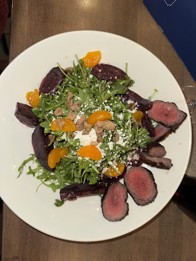 The food took a long time to arrive, and when it did, it was honestly mediocre at best. I ordered a beet salad with steak, which ended up costing me $40 (tip included), and it was cold, had burnt parts, wasn’t tender, and was unevenly cooked—definitely not worth the price.
