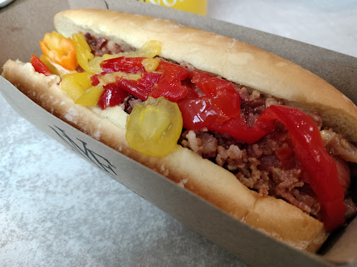 I ordered a Flamin' Bacon premium hotdog which had chipotle aioli, peppers, bacon and a regular fries.