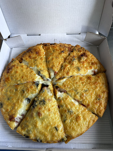 I was introduced to this delicious pizza a month ago when a friend brought a pie to my house. What a pleasant surprise that turned out to be. There are many 5* pizza joints in Calgary and this one is pushing 6. Dee...frickin...liscious!!! I tried the American Cheeseburger tonight and it not only was super mouth watering good but also very filling. I could only eat two pieces, which means this pizza will feed me for several days. Great value for the money. I had the xlarge one. Their crunchy cheese layer covering the top of the entire pizza is the clincher. Never have I seen or tasted this before. What a unique and wonderful palette teaser this is.