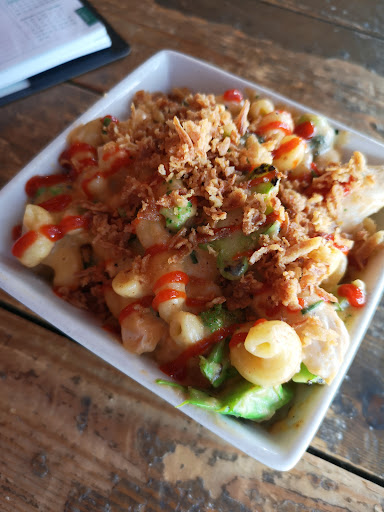 Try their Chinese Style Fried Rice with pulled pork, or their Pad Thai with chicken - and a mild/medium heat level, to test the waters - and you cannot go wrong. Or their Burmese Naan accompanied by a cilantro-curry-lime dip. Use the condiments as you deem appropriate, their chili oil infused with peanuts is a particular favorite; as are the fried onions (easy to go overboard on this one, speaking from experience).