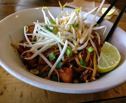 Food was ok but pricey. It would be better if "protein" was included in a meal. When I added "protein " I expected to get meat that was noticable in the bowl which was not the case. The noodles were a bit under cooked but good once I got used to them. I had the Pad Thai with mild spice. Sauce was different from other asian flavor restaurants but not bad. I seen the special displayed on the board after I was already waiting for my meal. They deliver it to your table. When you go there ask about the special if you do not see it right away or if they haven't told you prior to ordering. The special was priced under 10$, I paid under 15$ after adding chicken to my Pad Thai. I did not order any drink as the meal was already pricey. A nice water bar is available to use, regular water as well as sparkling water for your pleasure. I got the sparkling water which I did enjoy. If you don't know if you like it, get a small amount in your glass as it can fill you up. Their recycling bins are the best I've seen in a while. You shouldn't have to throw very much if anything into the normal garbage. Everything can be recycled. I will try this establishment again a few more times. My rating could...