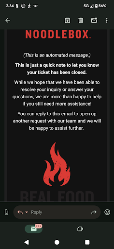 Read moreI ordered from Noodlebox on Saturday night through Skip The Dishes. I ordered the Cambodian vegetarian spring rolls (among other items) and specified on the notes that I am vegan and to please ensure the spring rolls were vegan, if not to simply cancel the item. When the order arrived my boxes were all marked vegan except for the spring rolls but I was happy to see the vegan notes and assumed the rolls were safe to eat. One bite in and I could taste that it wasn't right, so i called the store and spoke to someone and after some questioning I discovered that they were in fact pork. This is doubly distressing to me as I am also Jewish. I feel like this situation has not been resolved properly, through Skip I was refunded for the spring rolls and left to feel upset and like no one really cared about my experience. I spent the rest of the evening...