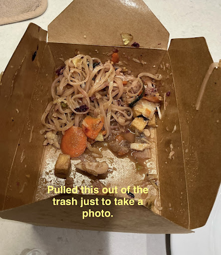 Limp broccoli, floppy carrots with spoil marks and rubbery chicken. The noodles were hard and either undercooked or just plain old stale.