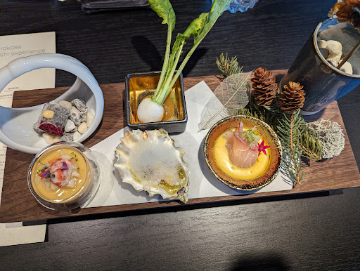 Read moreMy wife and I just had our "Culinary Journey" with another couple visiting from out of town. We spent nearly $800 on the Culinary Journey plus beverage pairing and 20% gratuity- upfront, 2 weeks prior to dining in. While the food was mostly fresh and tasty, the only thing that was actually interesting was the first course which consisted of a smokey tomato broth with noodles. The 2nd course was a nice tasting oyster (literally just one). My wife and I aren't familiar or excited about oysters in general but this was buttery and not slimey since it was cooked. My issue is that it was literally 1 oyster for each of us. Considering the $200 per person price tag, I'd like to offer my suggestion of increasing the value of the experience. Perhaps 3 oysters would be a more appropriate tasting portion. Still a "taste" but not one that is so quickly gone and forgotten. Another course that fell short was the salad course. It was just a bunch of thick, sliced red cabbage, onion slivers and some smaller unidentified morsels, including a somewhat large, fibrous, purplish Grey chunk of something that tasted quite unpleasant. And all of this was drizzled with a very tasteless dressing. The beverage pairings were pretty underwhelming, also. I don't think the "pairing" aspect was given much thought as they didn't seem to bring any cohesiveness to the table. It was mostly a collection of different sake which did not seem to pair well with the dishes at all. The sushi course was just okay. It came with 5 pieces for each of us and was fresh but was nothing special at all. Again, for the $200 per person, this should have and could have been something exceptional or imaginative. We did all agree on the dessert being pleasant which was a basque cheesecake but the overall experience was a disappointment. Aside from the food, the seating location was bad as it was right next to the door which led to the patio. This caused the presence of small flies to enter our space from time to time plus the outside noise muffled our server's voice so we often had trouble hearing them describe the dishes. Our table location was also amongst the other dine-in clients which meant there were conversations happening all around us adding to the difficulty hearing our server. They should have sat us at the bar in my opinion or somewhere a bit more intimate. The physical tables themselves were a bit uneven and small which detracted from the supposedly 'elevated' dining experience. Overall, quite disappointing and I cannot recommend based on our...
