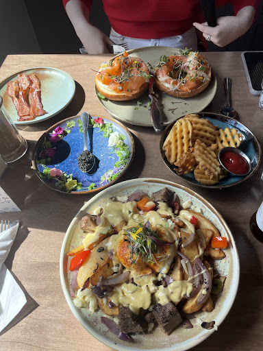 the stars are purely for the food. the food was delicious. service was quite frankly abysmal. ordered a coffee, a sparkling water and a smoothie. we watched the drinks be put up at the bar, and despite 7 team members working (who were all loitering and looking confused about what they were doing), it took 15 minutes to come. the coffee was not dropped off and still sat at the bar. after another 5 minutes our server who literally took our order asked her team members what this iced coffee was. their response was “it’s sat here for 20 minutes, we don’t know”. my husband asked for a sparkling mineral water, and a western family soda can was dropped off. at least put it in the glass… after we had waved down another server to ask if there was sparkling mineral water, she instead grabbed us regular waters and then our server immediately followed with waters. at the end of our meal, the server dropped the bill and had left on the coffee which we never received and clearly hadn’t even acknolwedged the fact.