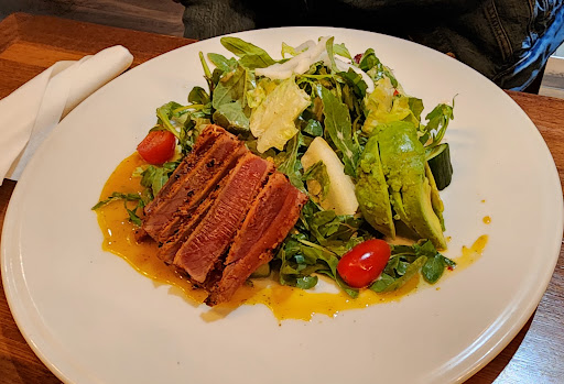 The place is pretty average but with potential. Food was good kinda. Nothing wrong with it other then they try really hard to be âuniqueâ and the chef does some things like uses so many different sauces to add life to food that itâs annoying. If you eat here understand what sauces they use and only accept what you really want. For example I had the owens landing burger, which is a was well prepared but the lettuce had a vinegar based dressing then heavy maple flavoured bacon with other sources on the burger. So you have this vinegar bite and really sugary (to the point your fingers were sticky) maple taste. The Brussels spouts appetizer (which was great in many ways) has two kids of sauce. It would have been really good literally with nothing on them, but one or the other Sauce would have been okay also but less so with both (some tomatoes based one and another mayo based drizzle on top). Of the several meals served at our table they were all âgoodâ but the over the top application of sauces on each meal was an obvious theme. Not to mention the fries with the burger were dried out/over fried and not good. The gimmick they use in place of bringing a mint to the table at the end of the meal were some cookies that should never be served. They took away from the other wise decent experience. The staff was fine, but not attentive enough. Polite enough and professional otherwise. This place is on the verge of being a 4 star and even a 5 star, but they need to figure out the menu a bit more and focus on enhancing the flavours and not drowning the dinner in new forced flavours the chef seems to use to override those natural ones. Over all, they could do very well with a bit of focus and moderating sauces. I will try them again in a few months and see...