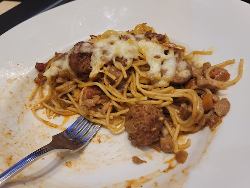 My partner ordered the Spaghetti, Meatballs and Sausage. It looks brown (see picture) and not at all appetizing. Flavour wise, he said the meatballs were very mushy and had the flavour you find in frozen meatballs rather than something made fresh. The Sausages were good but they are Spolumbo sausages so that is a given. The sauce itself was brown, and lifeless and didn't have any hint of fresh (and the cubes of carrot were absolute mush and we think that they were likely bought cubed like that rather than a fresh carrot).