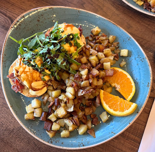 I ordered the Harvest Breakfast Bowl with poached eggs, for which I was offered a choice of hard, medium or runny. I ordered medium and they were perfect. The potatoes were baked, not deep fried and the vegetables were roasted and tasty. A reasonable deal at $18.49.