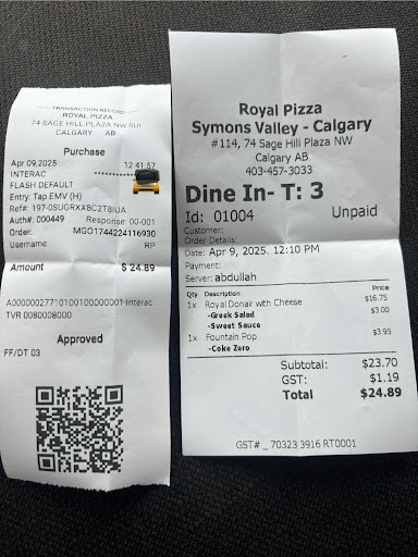 Read moreHave been a loyal customer to this place but tonight’s experience was awful. Called in to order the small $15.95 donair and ordering took the better part of 15 minutes due to some confusion on the staff persons part. I had asked for extra sauce and extra onions and it came out to $27.00 for one small donair. Still wondering how some extra onions add an additional small bit of sauce equates to $12.00 extra? I respectfully declined and thanked the person for their time but cancelled the order. Thought I would give it a try again and not sure if it was the same person and I explained that I wanted to order one small donair with extra onion and sauce. When they repeated my order it was one medium donair and one medium donair with extra sauce and onions. I explained that I am just ordering one small donair with extra onions and extra sauce. They advised that they needed to put me on hold to which I declined the order again as it shouldn’t be that complicated. I called another place and they took my order and it ended up being $15.00 and would be ready in 10 minutes to which upon pick up I added a 20% tip. Super disappointed as I love the food here and went quite a few times during COVID but tonight was the last straw. Sadly I always love to support local but cannot support this. I don’t write very many reviews but couldn’t let go of this one. I understand that food prices have escalated but$12.00 for 1/10 of an onion and a tablespoon of sauce...