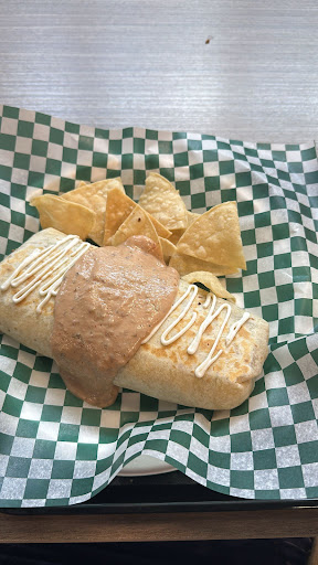 Read moreShared an almost $14 burrito with my husband. It was SOOOO BLAND - what tasted like simple boiled rice with carrots and green peas (like the frozen kind you get from the grocery store) and some ground beef (I didn't taste any seasoning) and cheese all rolled in a tortilla. There may have been a few beans in there but I didn't have any on the part I ate. A skimp of sauce on top cross-wise (not lengthwise) that offered no perceivable flavour to the blandness inside. The chips and bit of salsa the burrito came with were good and we tried to spread the salsa on the burrito to offer it some flavour. Very disappointing as I love the flavours of Mexico - chilli, cilantro, corn etc. Sadly they were missing here.